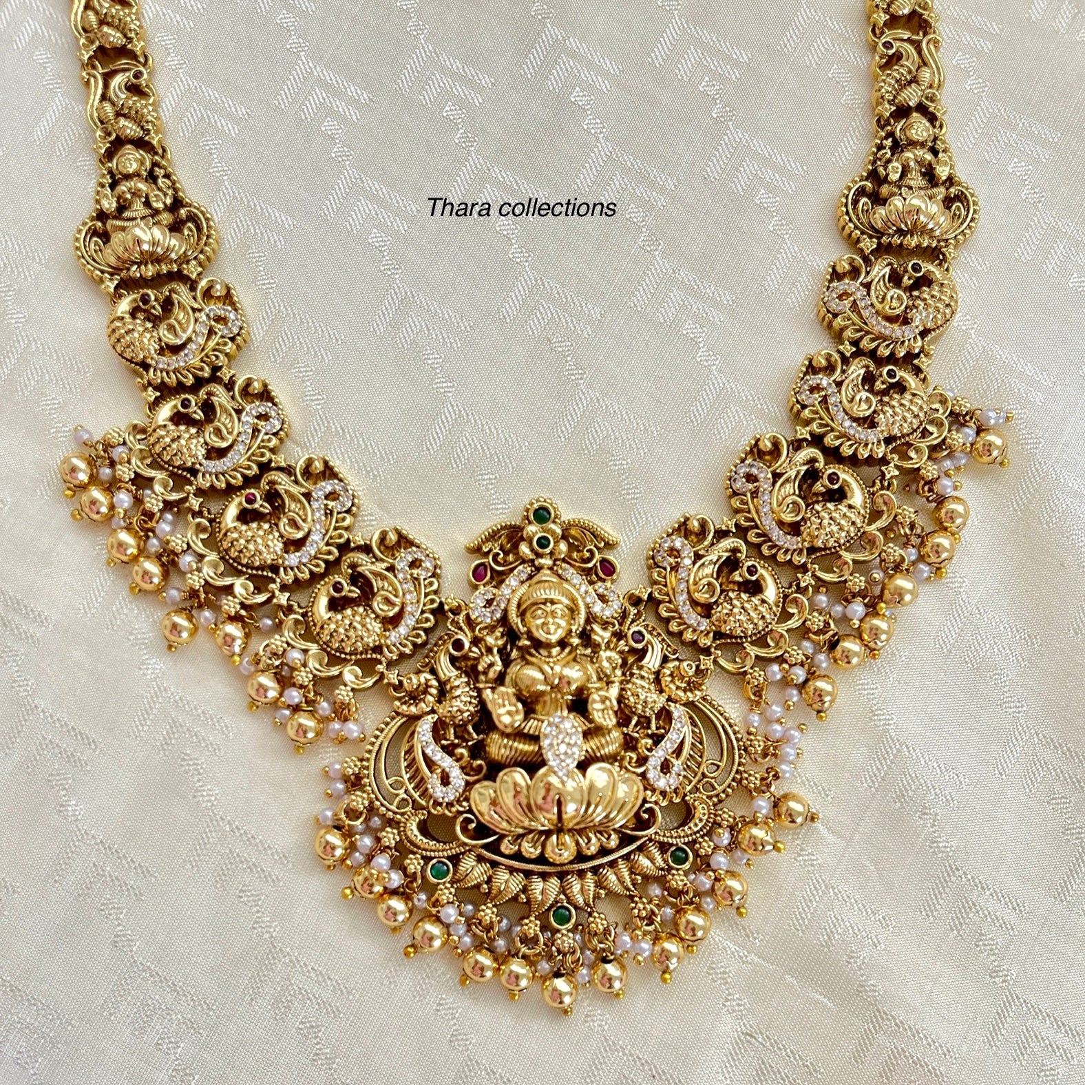 • Design: Traditional temple jewelry with Lakshmi motifs