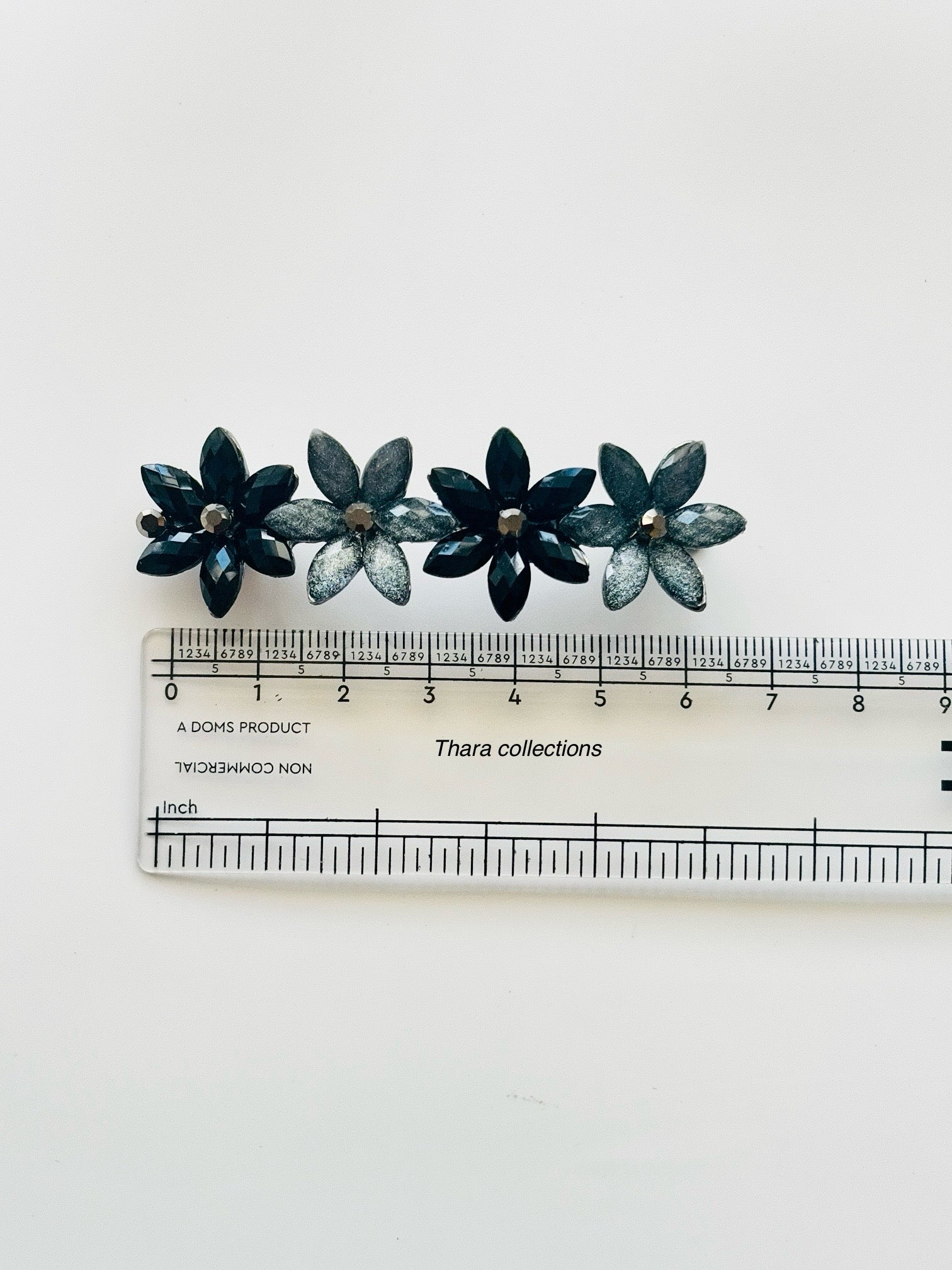 Slide it onto one side of your hair for a whimsical touch, or use it to secure a half-up hairstyle—letting the metallic petals catch the light for a chic, radiant finish.