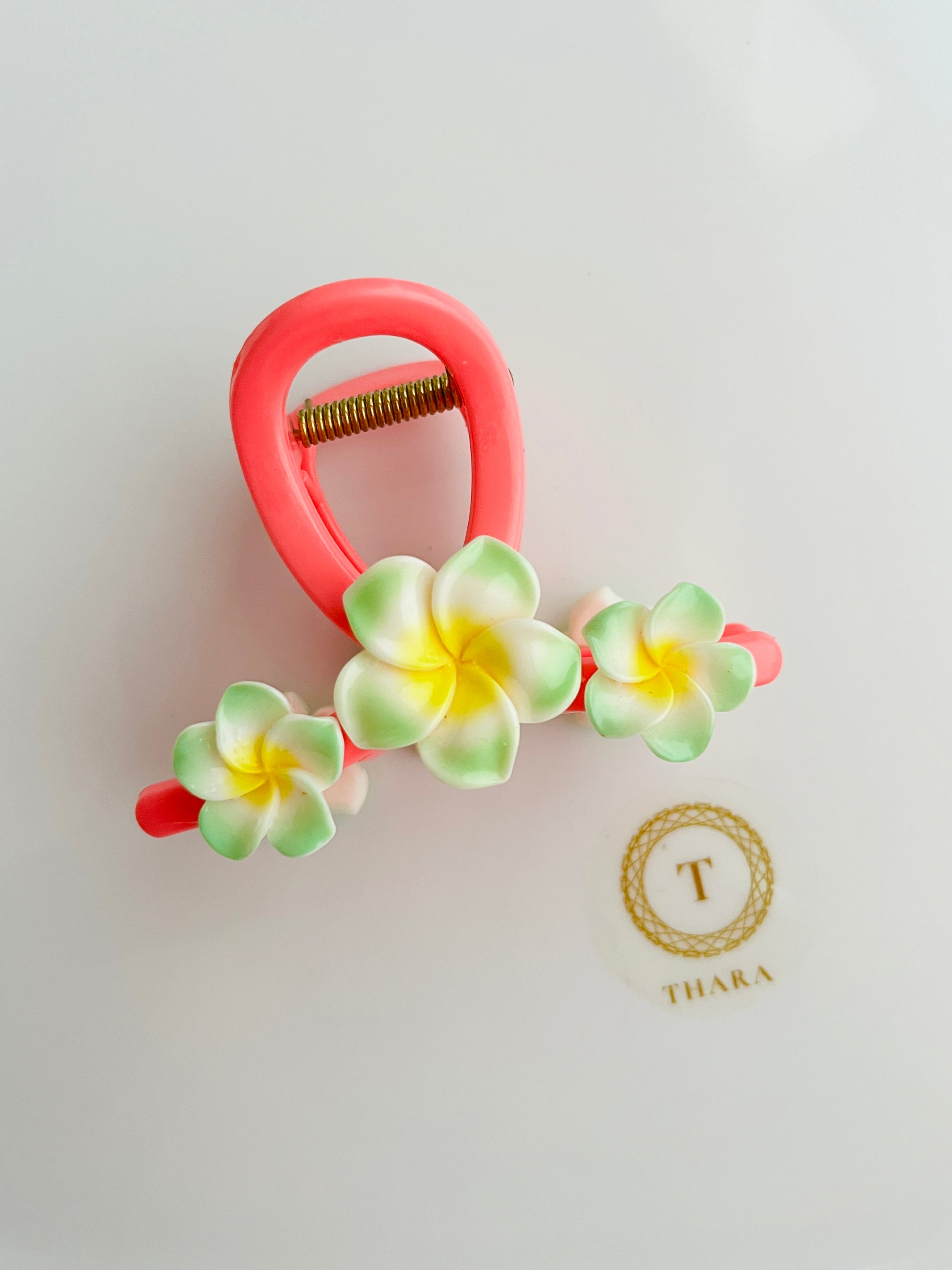 Add a touch of tropical charm to your hairstyle with these Plumeria Flower Hair Claw Clips. Designed with vibrant floral details, these claw clips are perfect for securing your hair in style while giving off a fun, summery vibe.