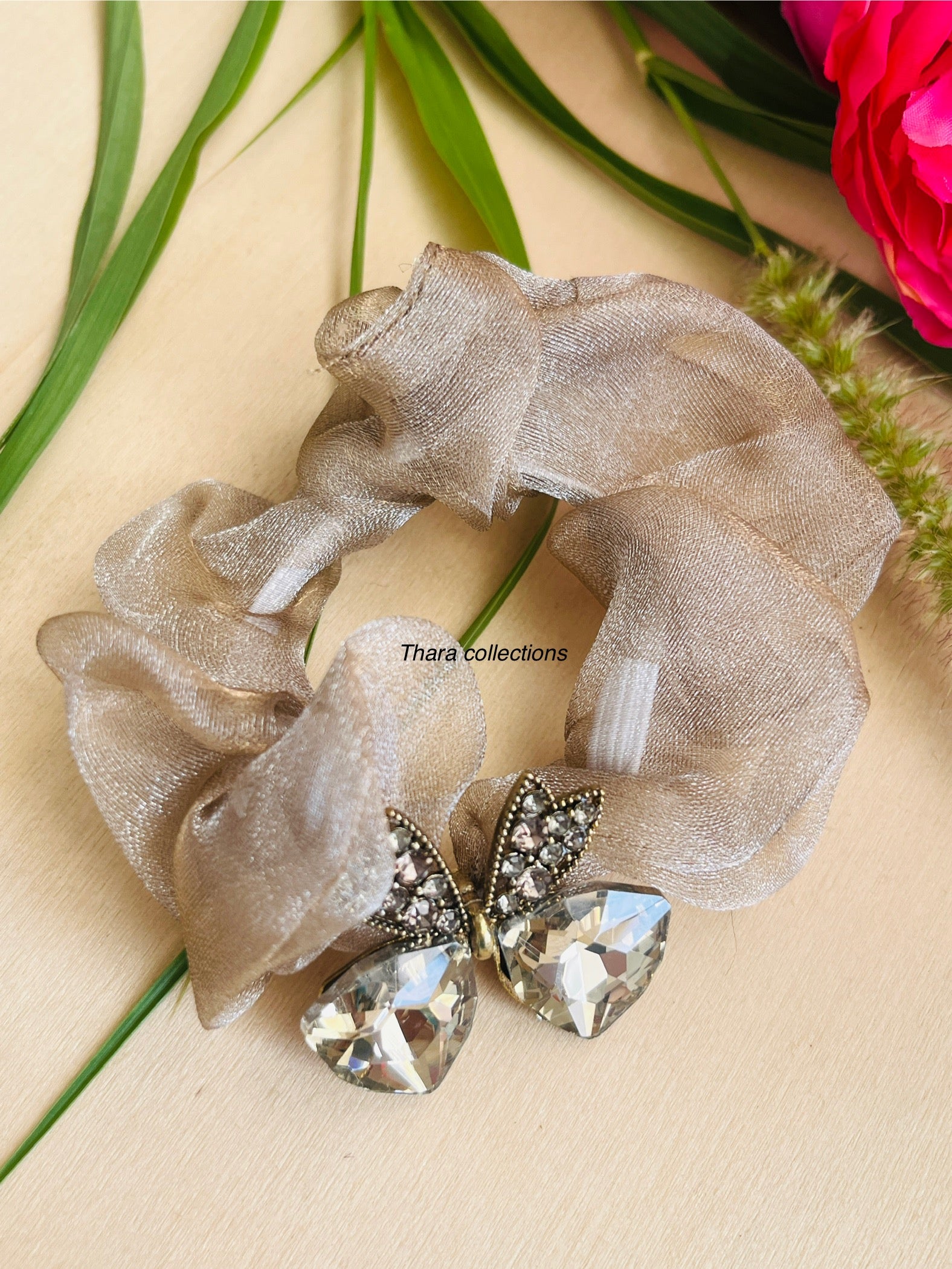 Add a touch of sparkle and elegance to your hair game with our Crystal Butterfly Scrunchie Collection – available in five stunning shades to match every mood and occasion. Made with soft organza fabric and a statement crystal butterfly charm, these scrunchies bring both glam and grace to your everyday style.
