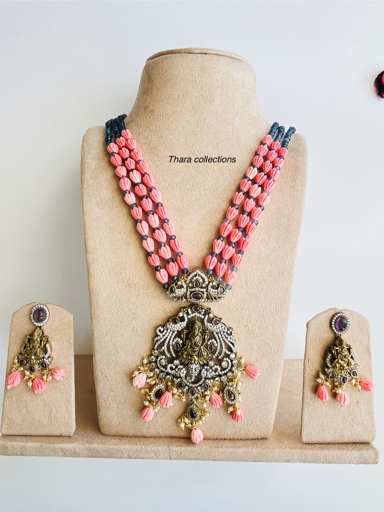 • One multi-strand beaded necklace with a Victorian-style Lakshmi pendant