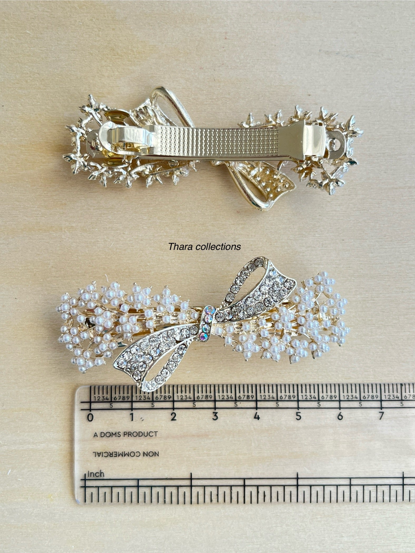 Elegant Pearl Bow Hair Clip – Luxe Crystal Design