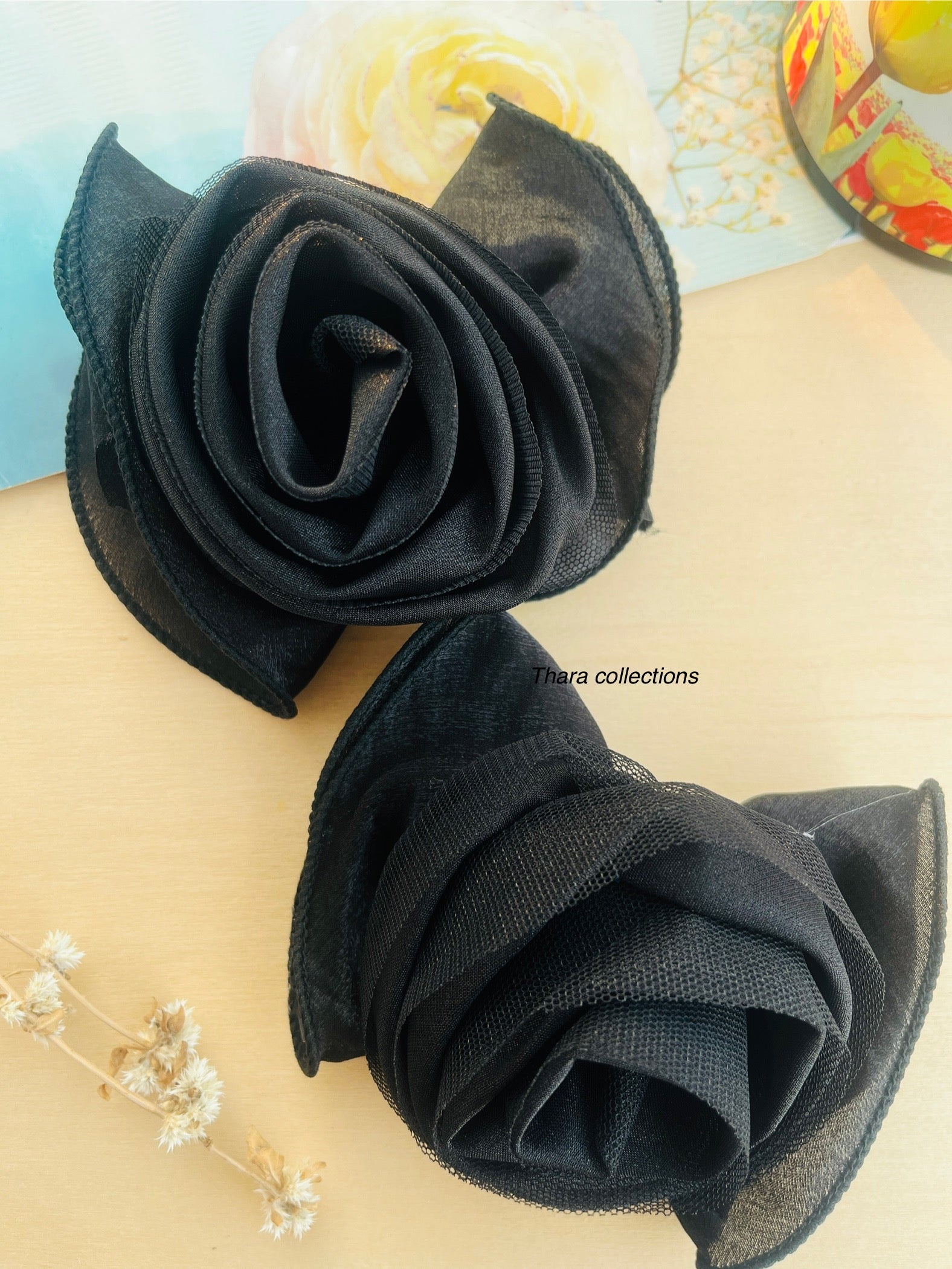 Add a touch of charm to your look with our Elegant Rose Bloom Hair Clips. Designed with delicate organza fabric in a beautiful rose shape, these clips are perfect for all ages. Whether you’re styling a braid, ponytail, or open hair, these versatile clips bring a soft and graceful flair. The set features five stunning shades: Black, Cream White, Baby Pink, Caramel Beige, and Mint Blue – a perfect mix of bold and pastel tones for any mood or occasion.