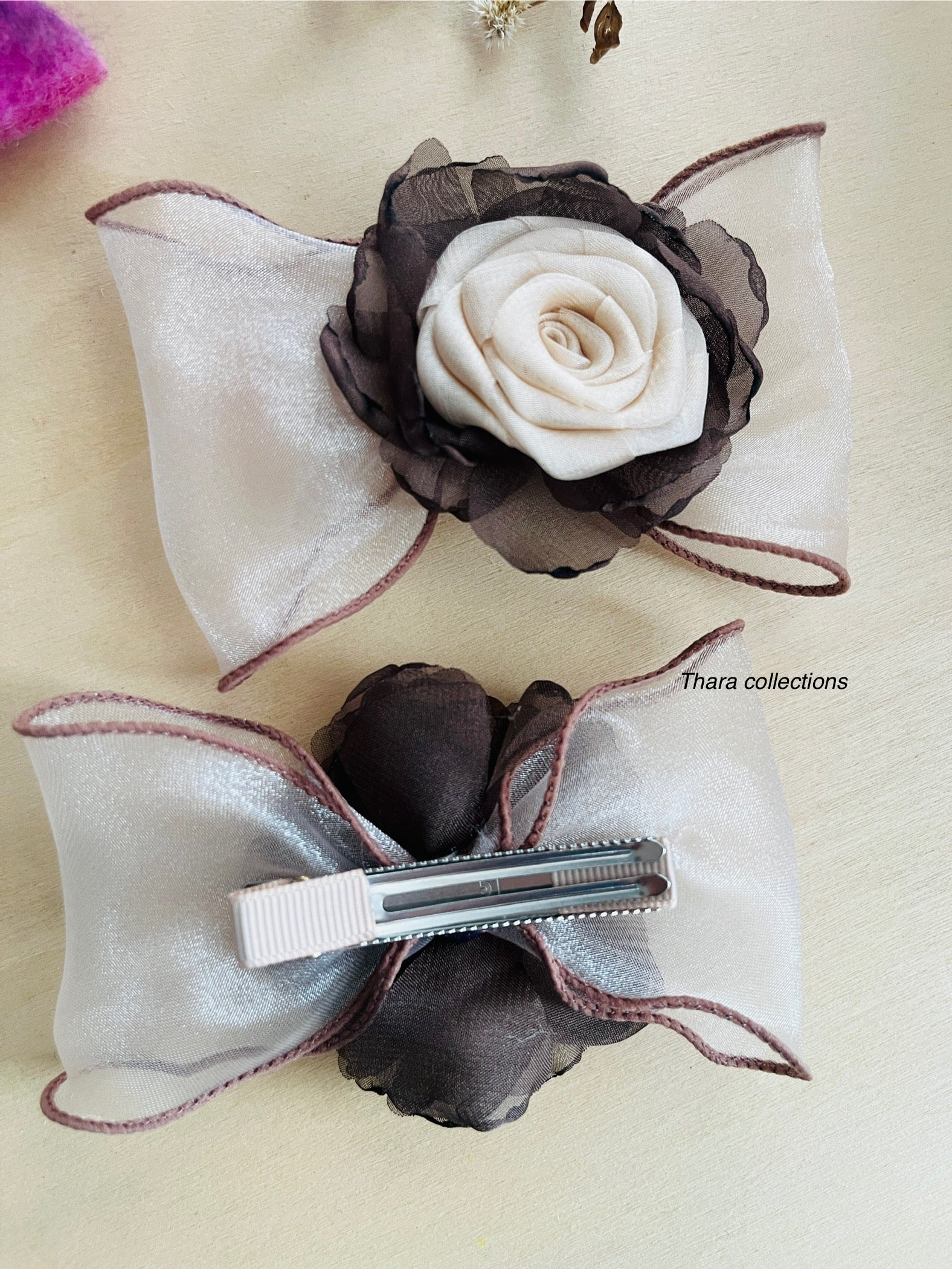 Channel timeless elegance with our Elegant Rose Charm Hair Bows β featuring a beautifully layered satin rose at the center of a sheer, structured bow. These bows blend romantic colors with a graceful silhouette, making them perfect for special occasions or adding charm to everyday wear.