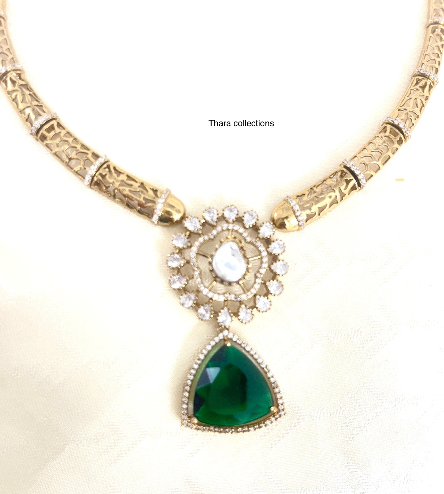 ✔ A statement necklace with a radiant green teardrop stone, surrounded by dazzling white stones for a regal finish.