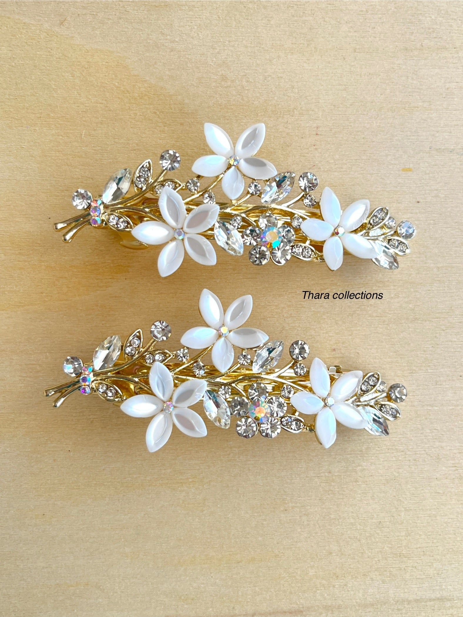 Floral Crystal Hair Barrette – Elegant Gold Finish
