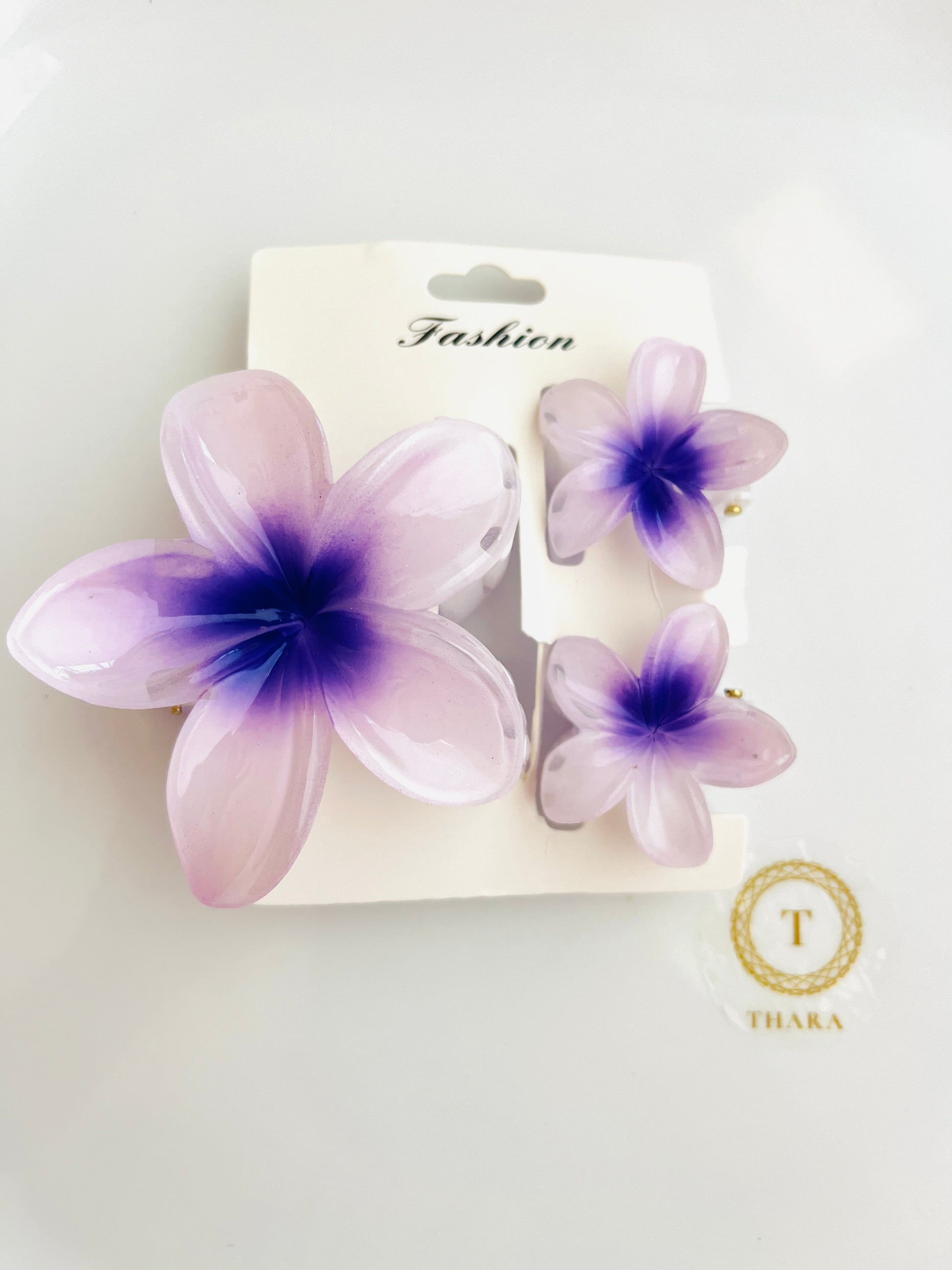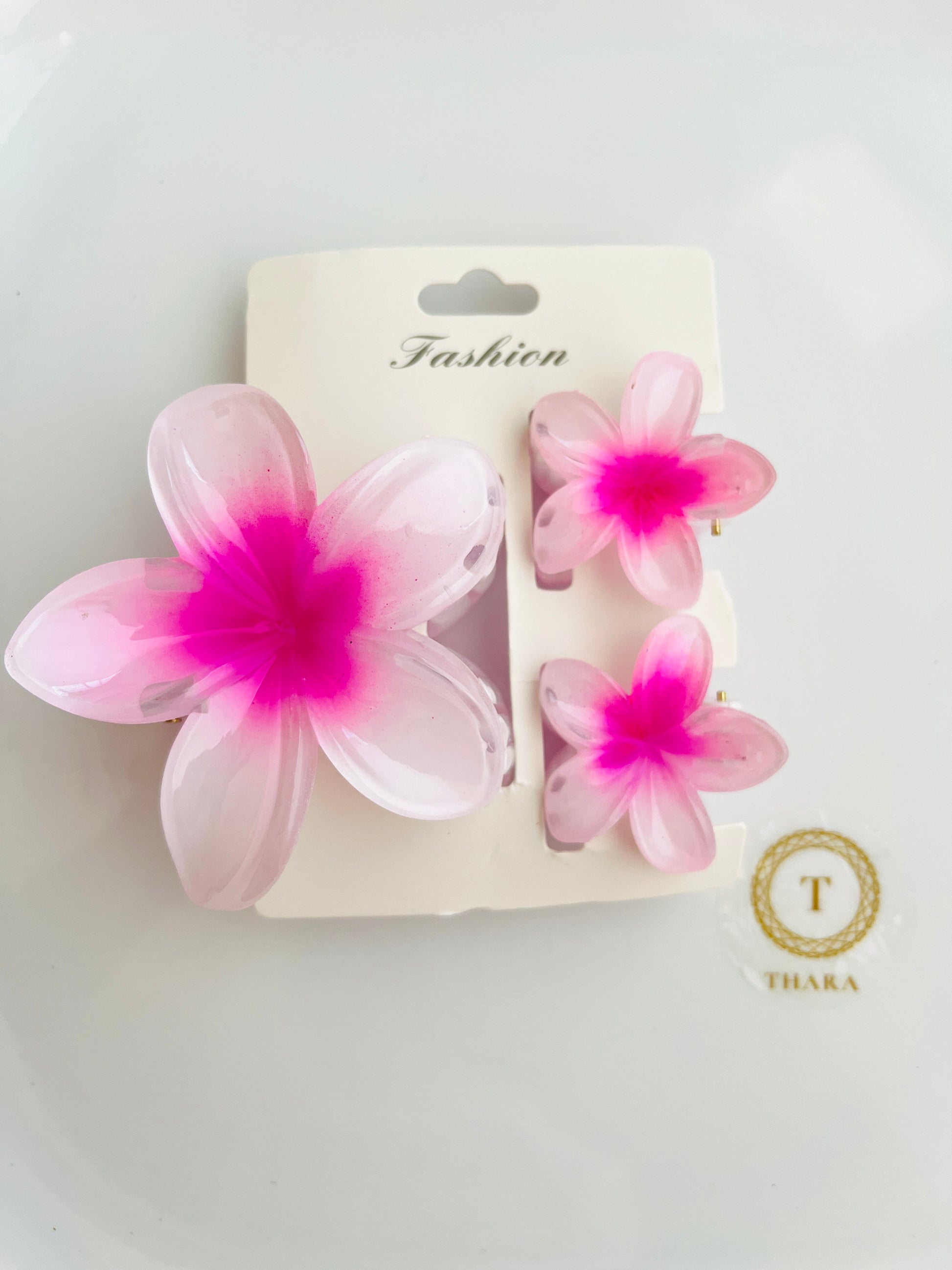 Glossy Hawaiian Floral Hair Clips – Set of 3