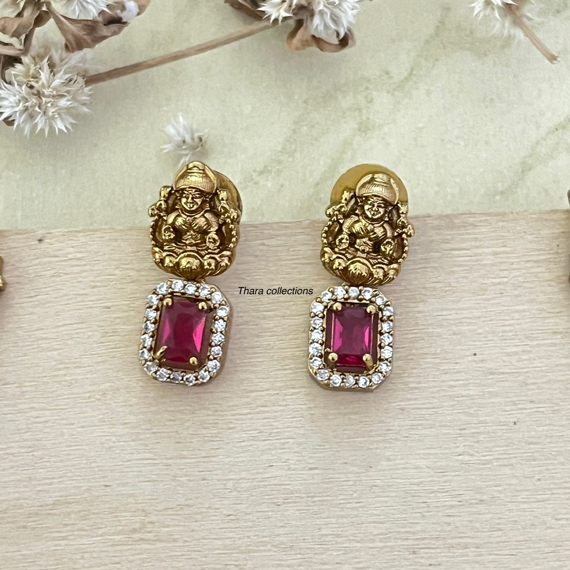 Make a statement with this Grand Lakshmi Pendant Temple Necklace Set, a timeless piece inspired by traditional South Indian jewelry. This exquisite necklace features intricately carved Goddess Lakshmi motifs, beautifully paired with multi-colored stone embellishments and a majestic Lakshmi pendant adorned with pearl droplets. The matching earrings complement the design, adding a touch of divine elegance.