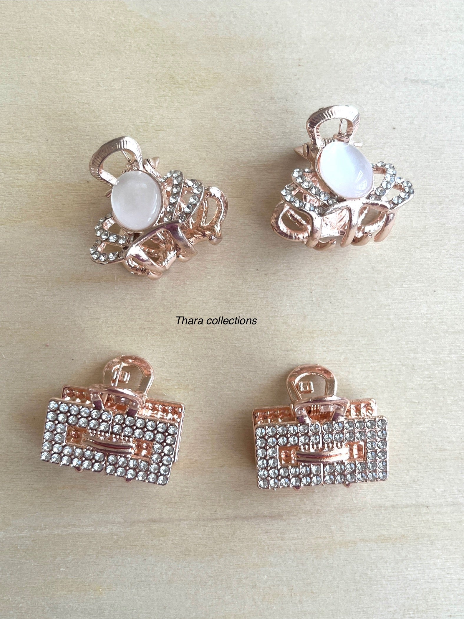Elevate your hairstyle with our Rose Gold Glam Hair Clip Set, designed to add a luxurious touch to your look. Featuring sparkling rhinestones and elegant designs, these clips are perfect for both casual and festive occasions. The rose gold finish adds a sophisticated charm that complements various hairstyles.
