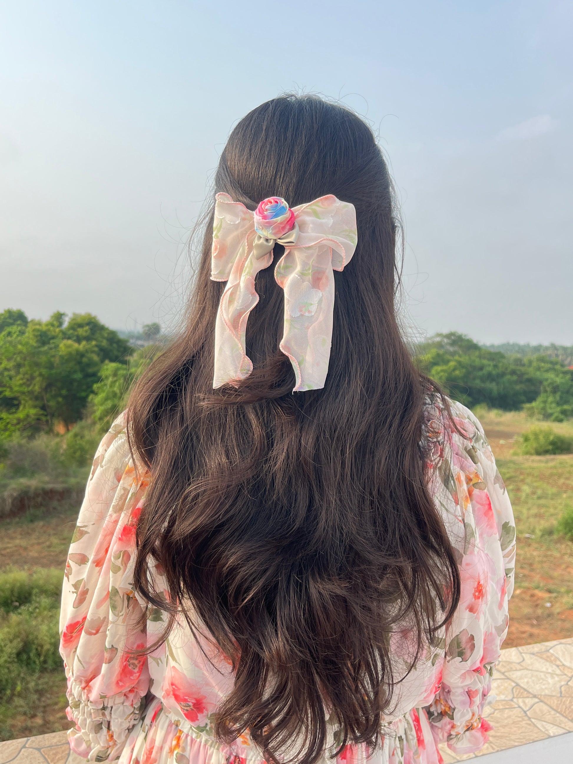 Embrace elegance with our Pastel Garden Bloom Bow Clips, inspired by watercolor florals and soft spring hues. Each clip features a beautifully layered rosebud at the center, set against flowing floral-print ribbons with a pastel-trimmed edge. These lightweight yet eye-catching clips are perfect for adding a dreamy touch to everyday outfits or dressing up for special occasions.