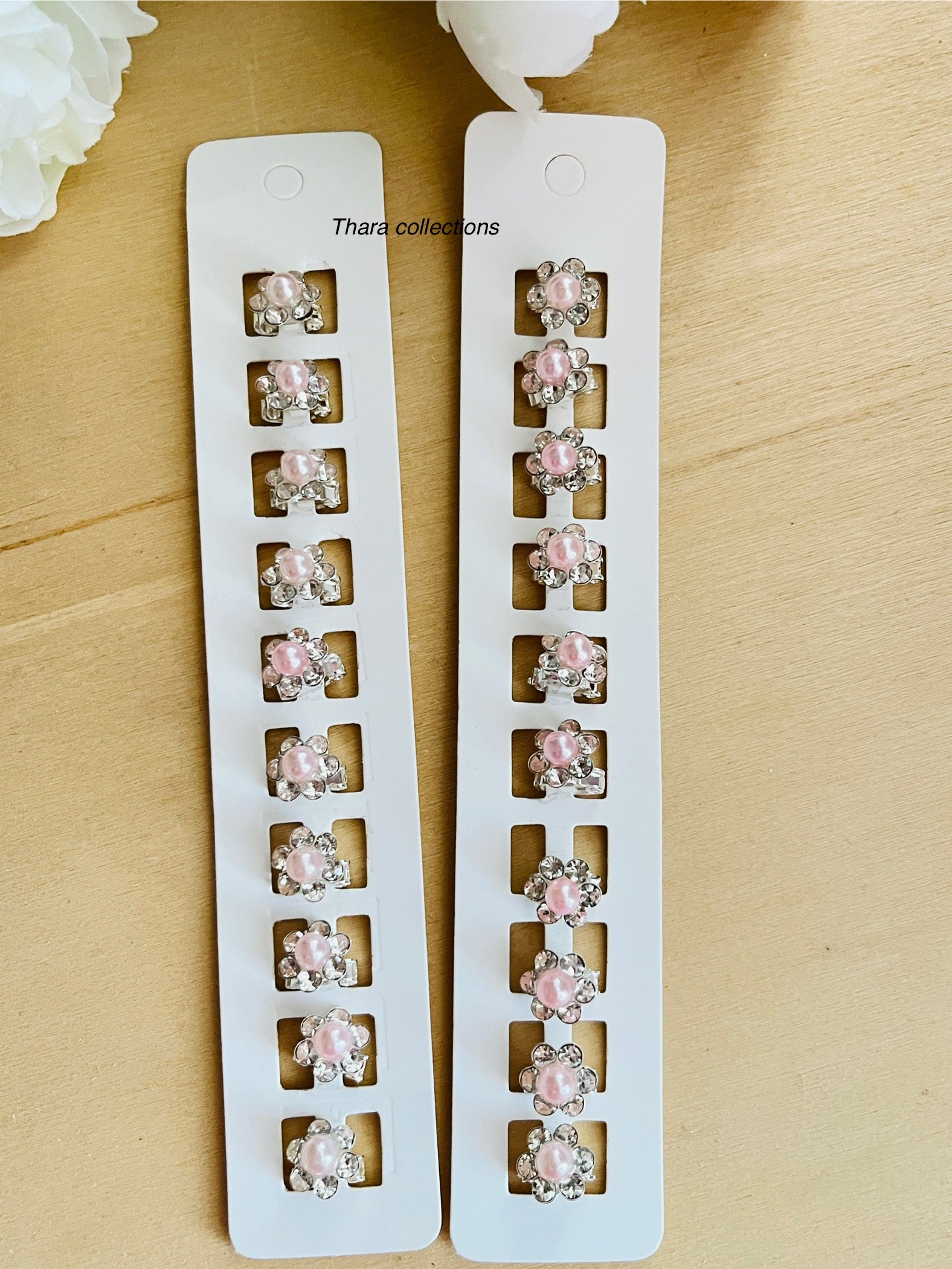Elevate your hairstyle with these Pearl Spark Mini Hair Clips featuring elegant faux pearls framed by dazzling crystal accents. These mini claw clips come in a set of 10 and are available in four rich shades—Classic White, Aqua Blue, Baby Pink, and Ruby Red—perfect for dressing up any look, from casual to festive.