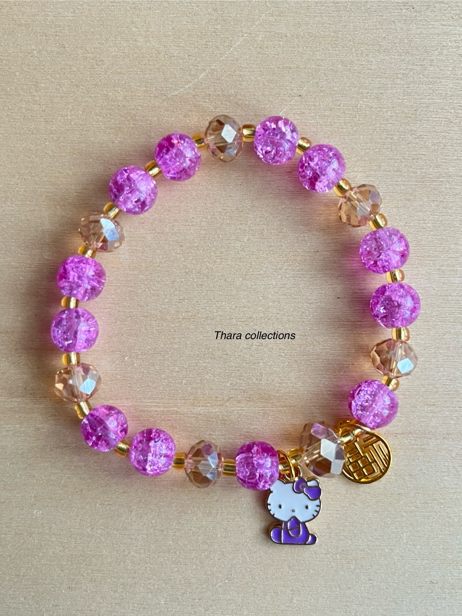 Add a touch of charm to your wrist with our handcrafted beaded bracelet. Featuring crystal white crackle beads, gold-tone accents, and a beautiful purple kitty pendant, this bracelet is perfect for adding a playful yet elegant touch to any outfit. The adjustable design ensures a comfortable fit for all. Perfect for casual wear, gifting, or stacking with other bracelets!