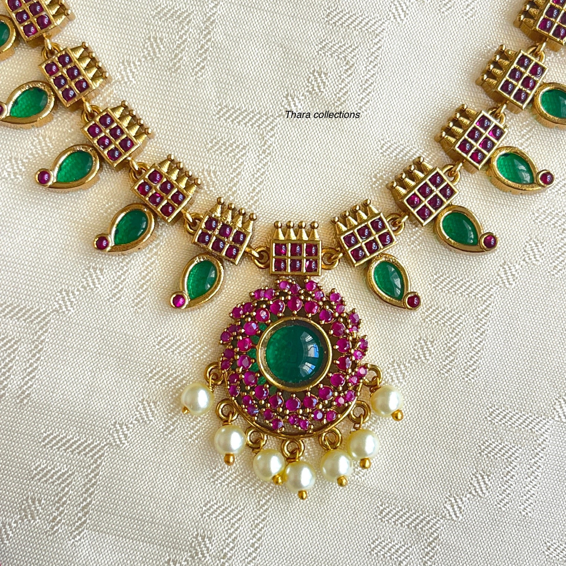 Traditional Kundan & Emerald Semi-Bridal Necklace Set with Pearl Drops